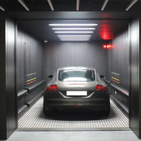 The car platform are raised and lowered in the similar fashion as freight elevator except for the fact that size and load carrying capacity of lift platform is in accordance with the dimensions & weight of largest vehicle to be transported between floors. ONEX offers all types of vehicle elevator from 2500Kg for smaller cars to 5000 Kg for bigger cars like SUVs and tempos.